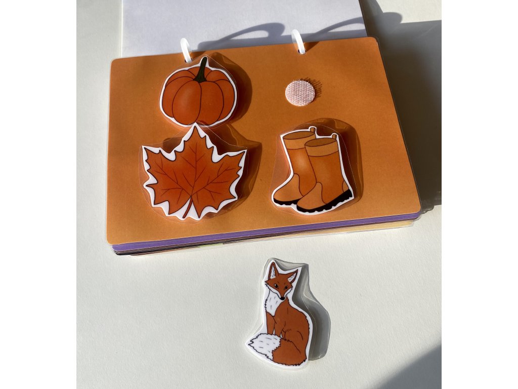 Knížka obsahuje líbivé obrázky, díky kterým se děti budou hravě rozvíjet. Jednotlivé dílky a obrázky se dají díky suchému zipu opakovatelně odlepovat a přiřazovat zpět. Celá knížka je mou autorskou tvorbou - pečlivě vymyšlená, nakreslená a následně vytvořená, takže se jedná o originál, který jinde nenajdete :)